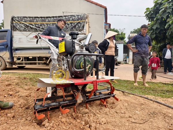Khách hàng sau khi chạy thử đánh giá máy hoạt động ổn định, lực kéo mạnh, di chuyển linh hoạt trên nền đất ruộng và đất đồi.