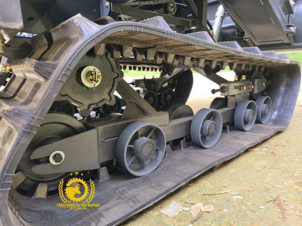 - Bản xích có động rộng 35cm, trọng lượng máy khá nhẹ chỉ có 645kg nên máy có khả năng đi sình lầy tương đối tốt. bánh tì được làm từ sắt cho tuổi thọ cao hơn rất nhiều so với các mẫu cũ sử dụng bánh tì bằng nhựa.