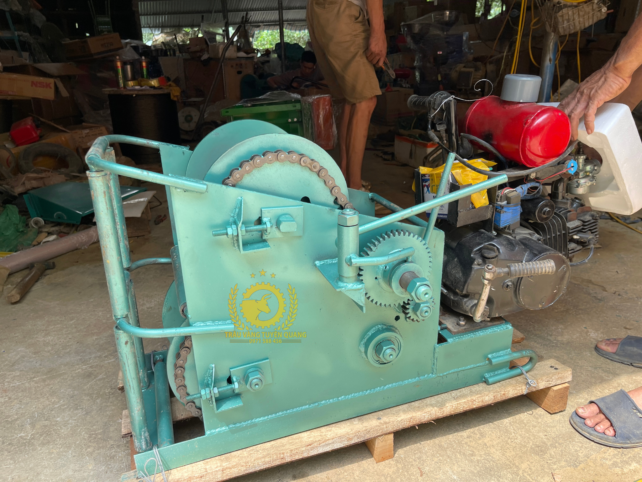 Máy tời gỗ thật ra là một chiếc máy tời kéo được lắp đặt, thiết kế sao cho phù hợp với môi trường sử dụng. Động cơ của máy mạnh mẽ, sức kéo cao và bền bỉ.