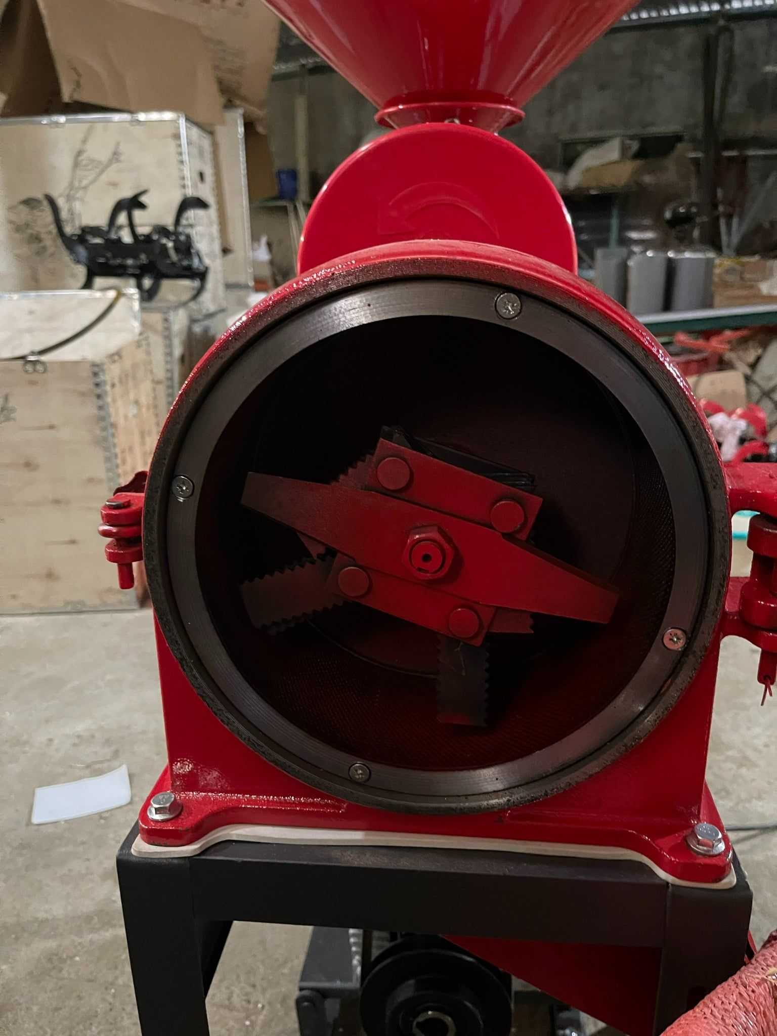 - Khoang xát của máy được làm bằng vật liệu gang chống mài mòn tốt.